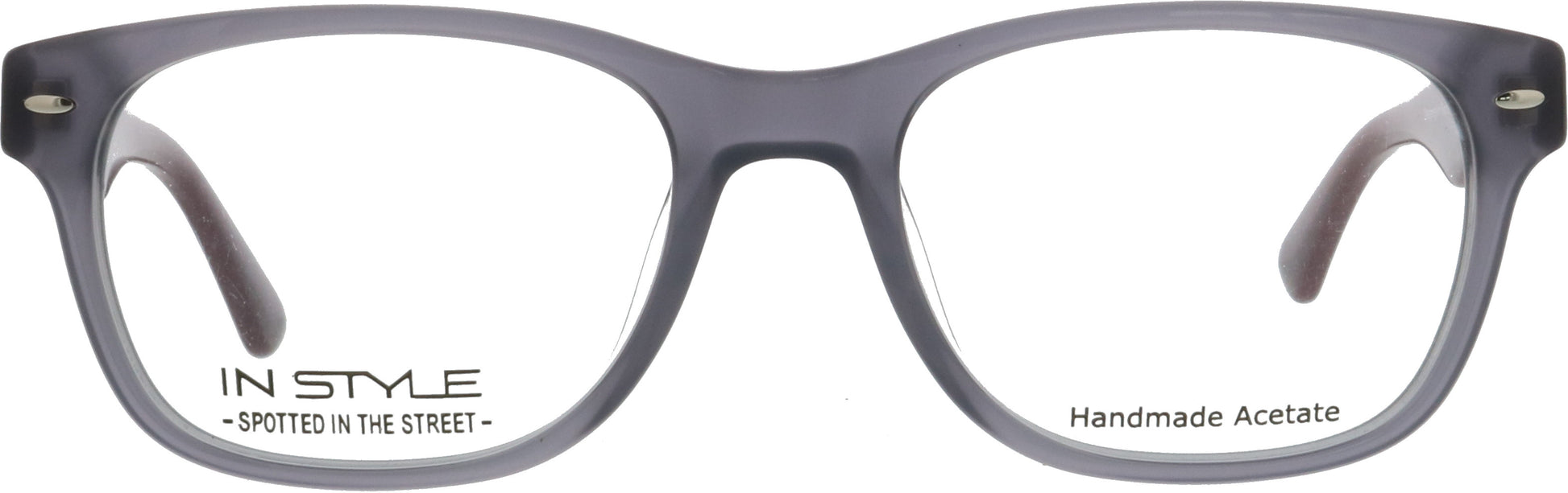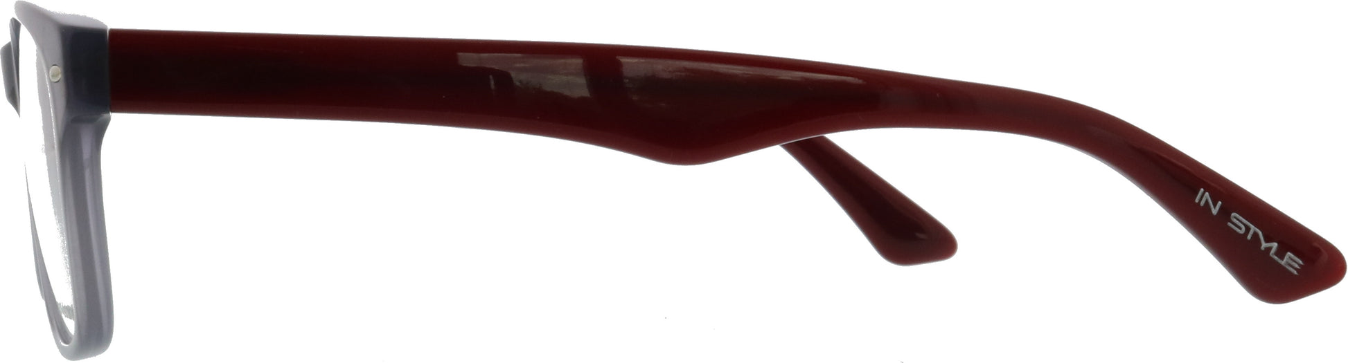 Klassische Kunststoffbrille für Damen und Herren von der Marke InStyle in Grau mit roten Kunststoffbügeln.