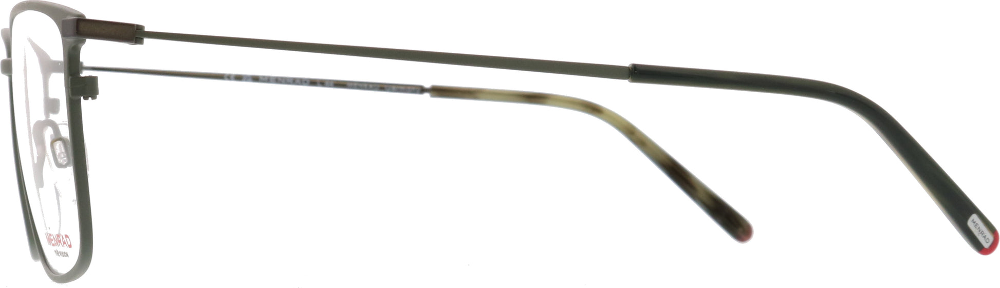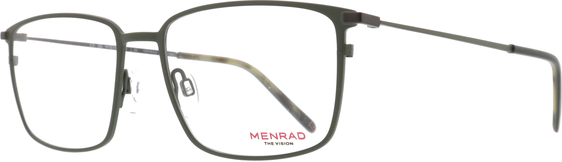 Klassische Metallbrille für Herren von der Marke Menrad in der Farbe oliv grün. Ihre quadratische Form ist für markante Gesichter gut geeignet.