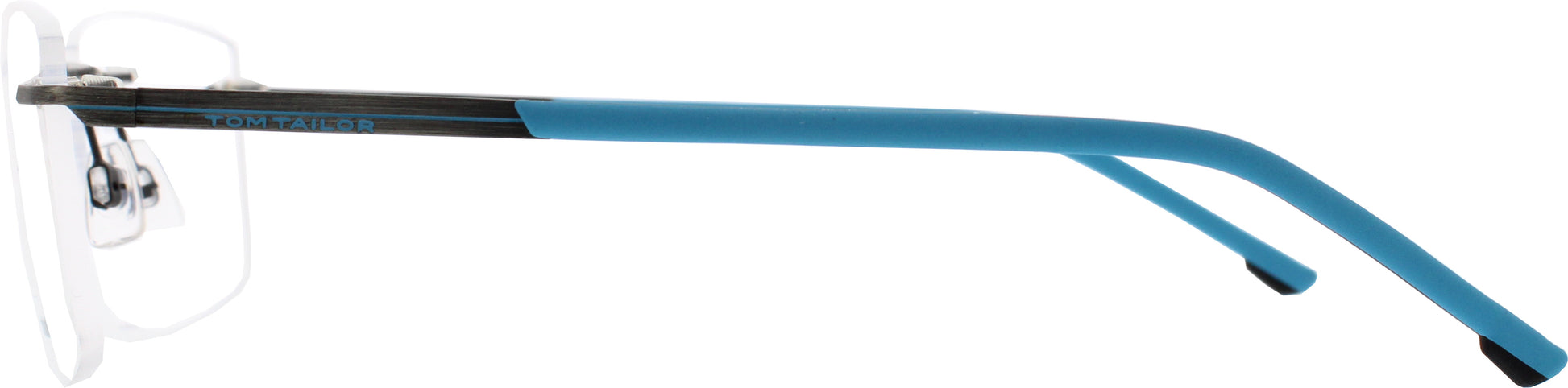Die Tom Tailor 60593 ist eine moderne Herrenbrille im randlosen Design, die durch ihre elegante graue Fassung und die auffälligen türkisen Bügel besticht. Diese Kombination verleiht der Brille einen frischen, urbanen Look und macht sie zum idealen Accessoire für Männer, die Wert auf Stil und Komfort legen. Dank der randlosen Bauweise wirkt die Brille besonders leicht und dezent, während die farbigen Bügel einen modischen Akzent setzen. Die hochwertige Verarbeitung sorgt für Langlebigkeit und angenehmen Tragekomfort – perfekt für den Alltag, Business oder Freizeit.