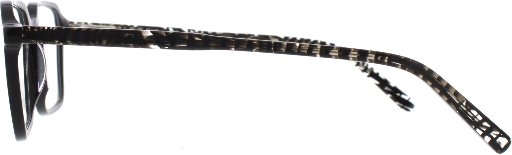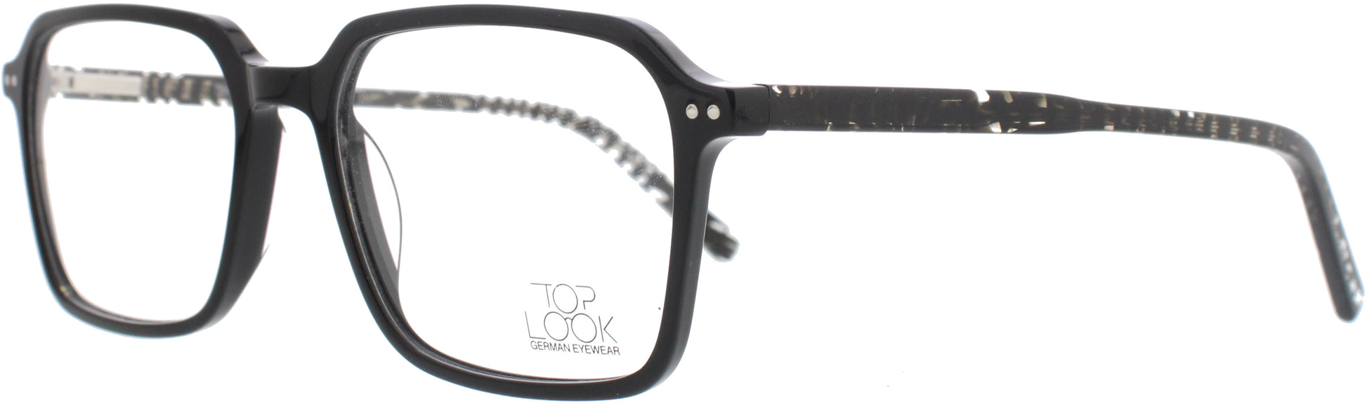Die Top Look Herrenbrille vereint klassisches Design mit modernen Akzenten und ist die ideale Wahl für Männer mit Stilbewusstsein. Die rechteckige Form sorgt für eine klare, markante Linienführung und passt besonders gut zu runden und ovalen Gesichtsformen. Das schwarze Kunststoffgestell wirkt dezent und zeitlos, während die gemusterten Bügel einen klassischen, modischen Kontrast setzen. Die klassische Farbe verleiht der Brille eine elegante Ausstrahlung, die sowohl im Business-Alltag als auch in der Freizeit überzeugt. Der hochwertige Kunststoff ist leicht, robust und bietet einen angenehmen Tragekomfort.