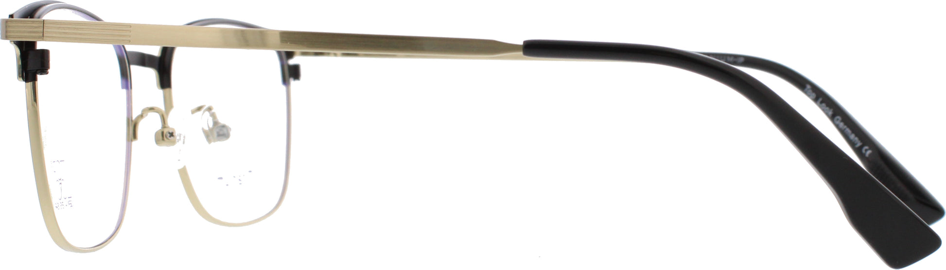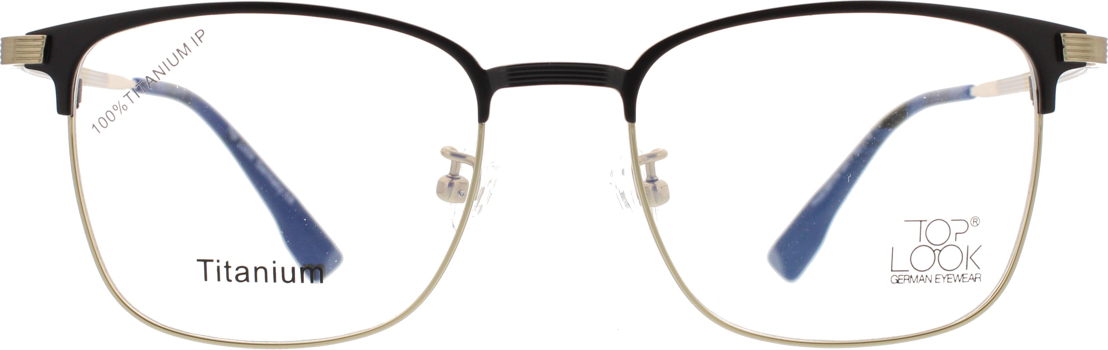 Elegante Herrenfassung aus 100 % Titan mit langlebiger IP‑Beschichtung, markanter Browline in Schwarz und feinem Goldton. Ultraleicht, stabil, hypoallergen – mit verstellbaren Nasenpads und angenehm geformten Bügelenden für ganztägigen Komfort.