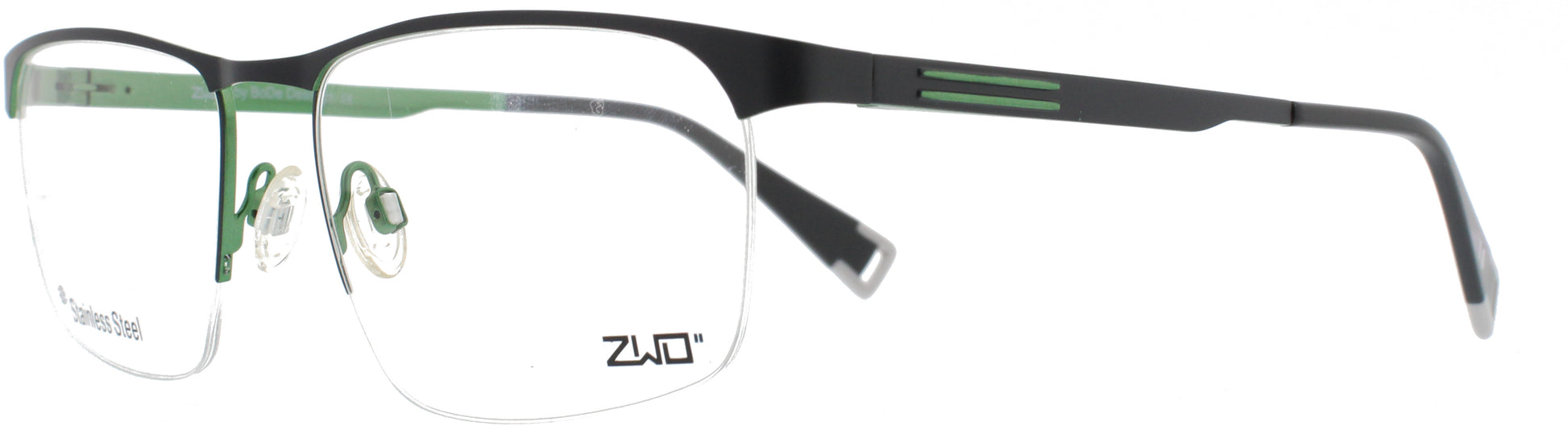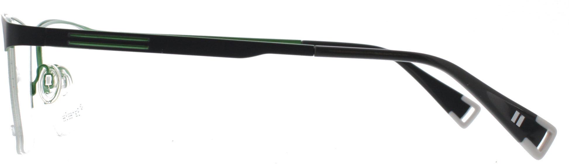 Moderne Herrenbrille in trendigem Grün. Die leichte Halbrandfassung (Nylor) aus Metall bietet hohen Tragekomfort und einen stilvollen Look. Die große Form passt ideal zu markanten Gesichtern – perfekt für Männer, die eine dezente, farbige Brille suchen.